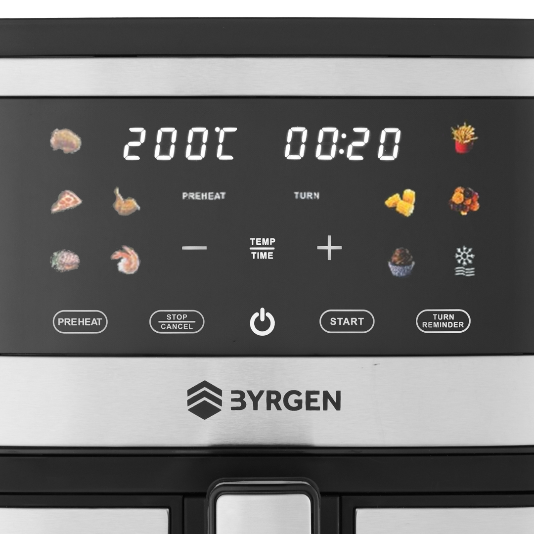 Air Fryer BYRGEN to nowoczesne podejście do gotowania – stworzone z myślą o tych, którzy chcą jeść zdrowiej, ale nie zamierzają rezygnować z doskonałego smaku. Dzięki technologii szybkiej cyrkulacji gorącego powietrza możesz cieszyć się ulubionymi potrawami w lżejszej wersji – z nawet 80% mniejszą ilością tłuszczu niż w przypadku tradycyjnego smażenia.