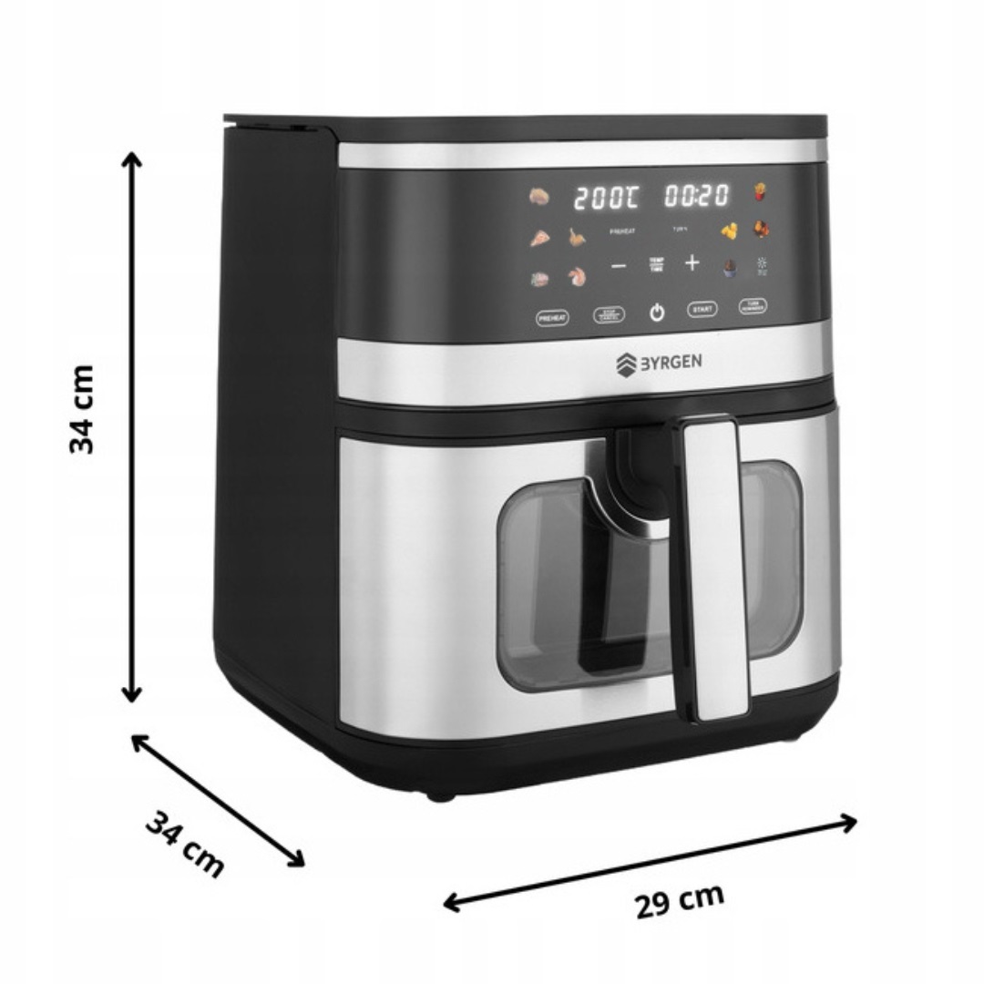 Air Fryer BYRGEN wyróżnia się przezroczystym okienkiem z podświetleniem, które nie tylko dodaje elegancji, ale przede wszystkim zwiększa komfort i bezpieczeństwo podczas przygotowywania potraw.